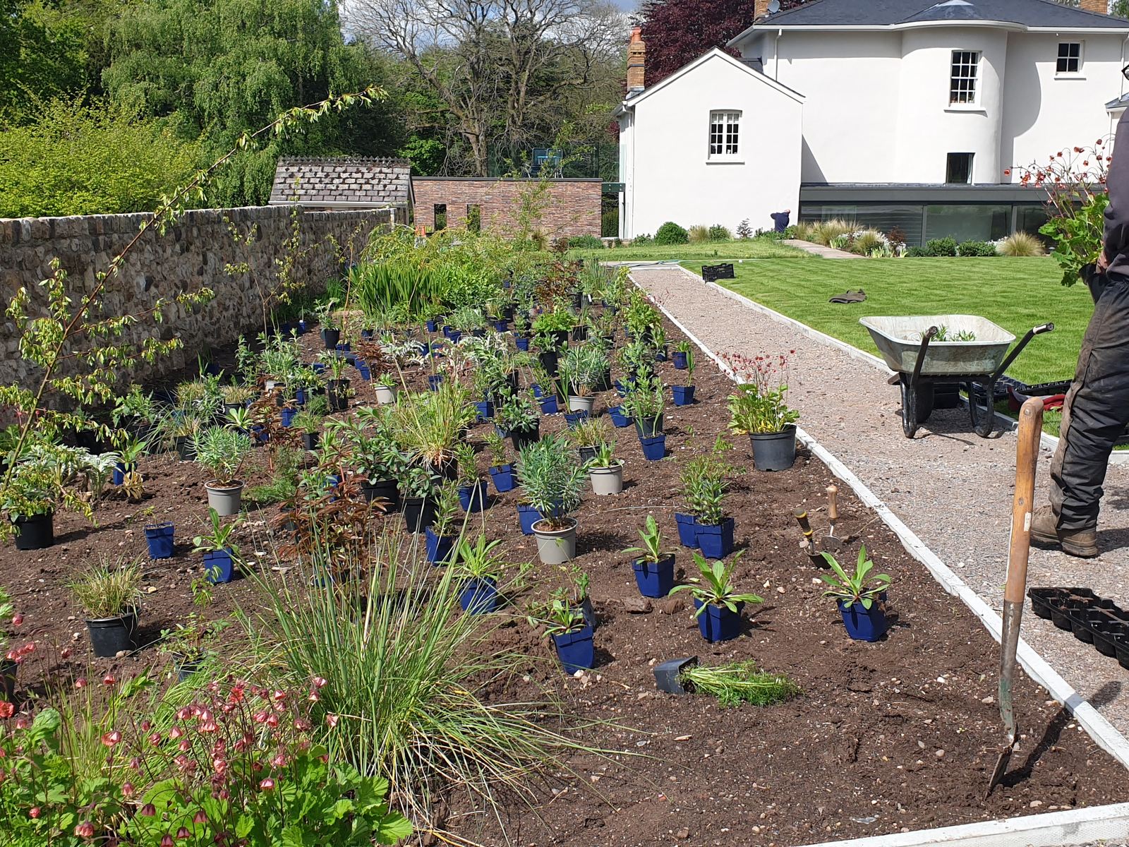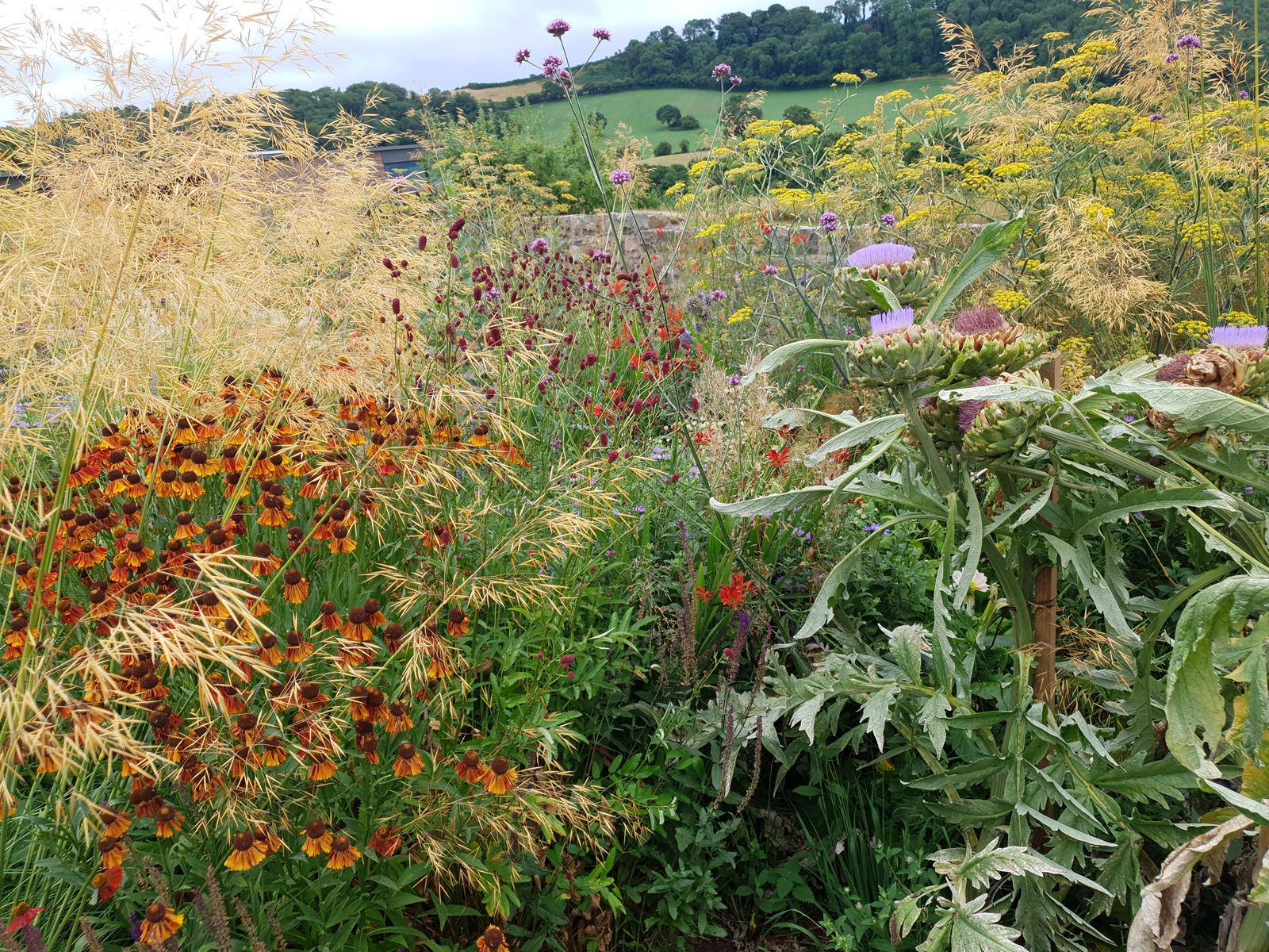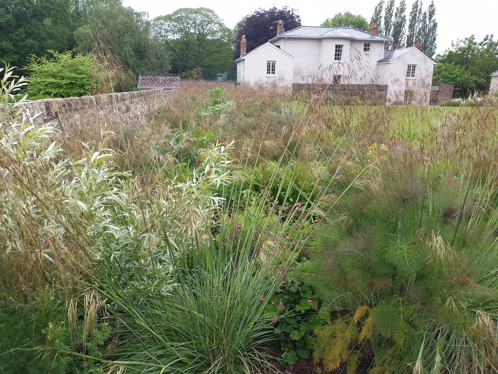 Its setting is a Regency lodge house, overlooking picturesque Monmouthshire hillsides, woodland, meadow, pasture and strong hedgelines. The setting seemed appropriate to go for a naturalistic planting style with mixed combinations and a strong framework of tall grasses.